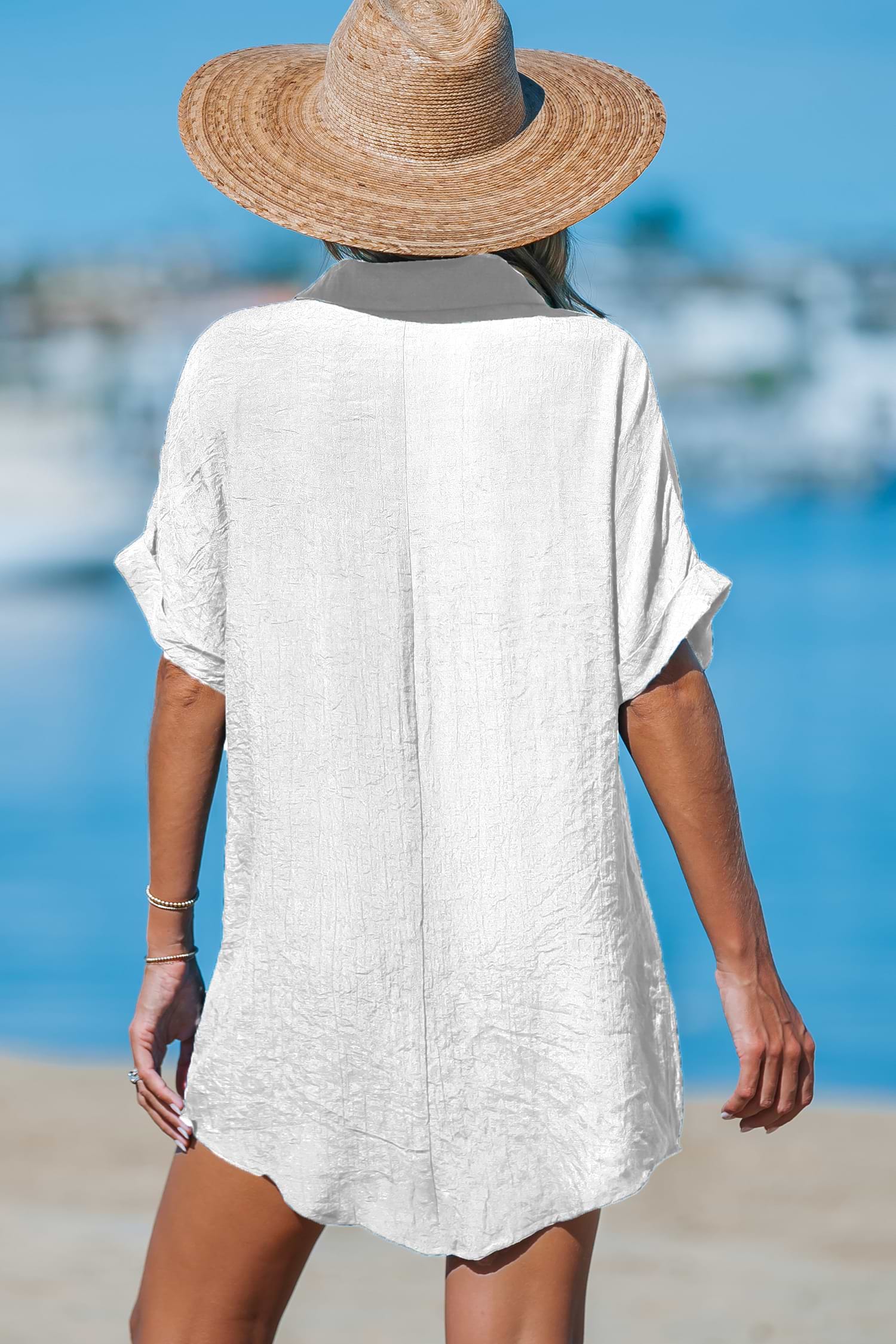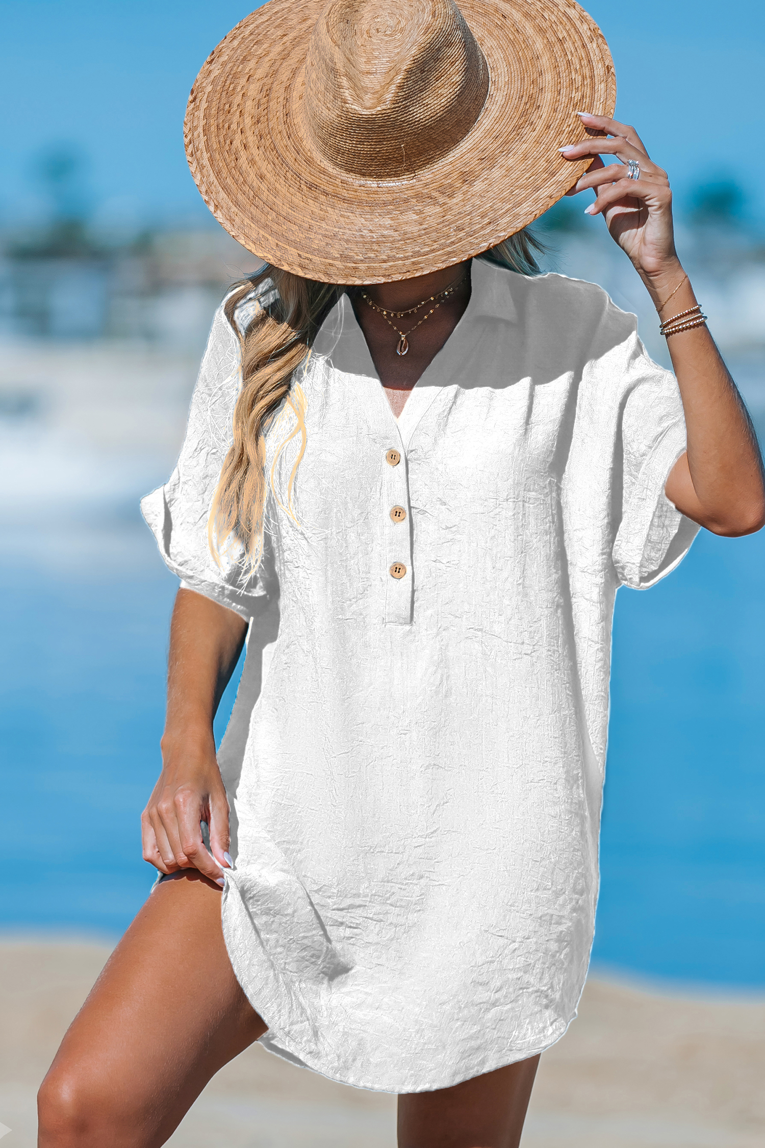Mini pareo con botones delanteros y cuello en V blanco