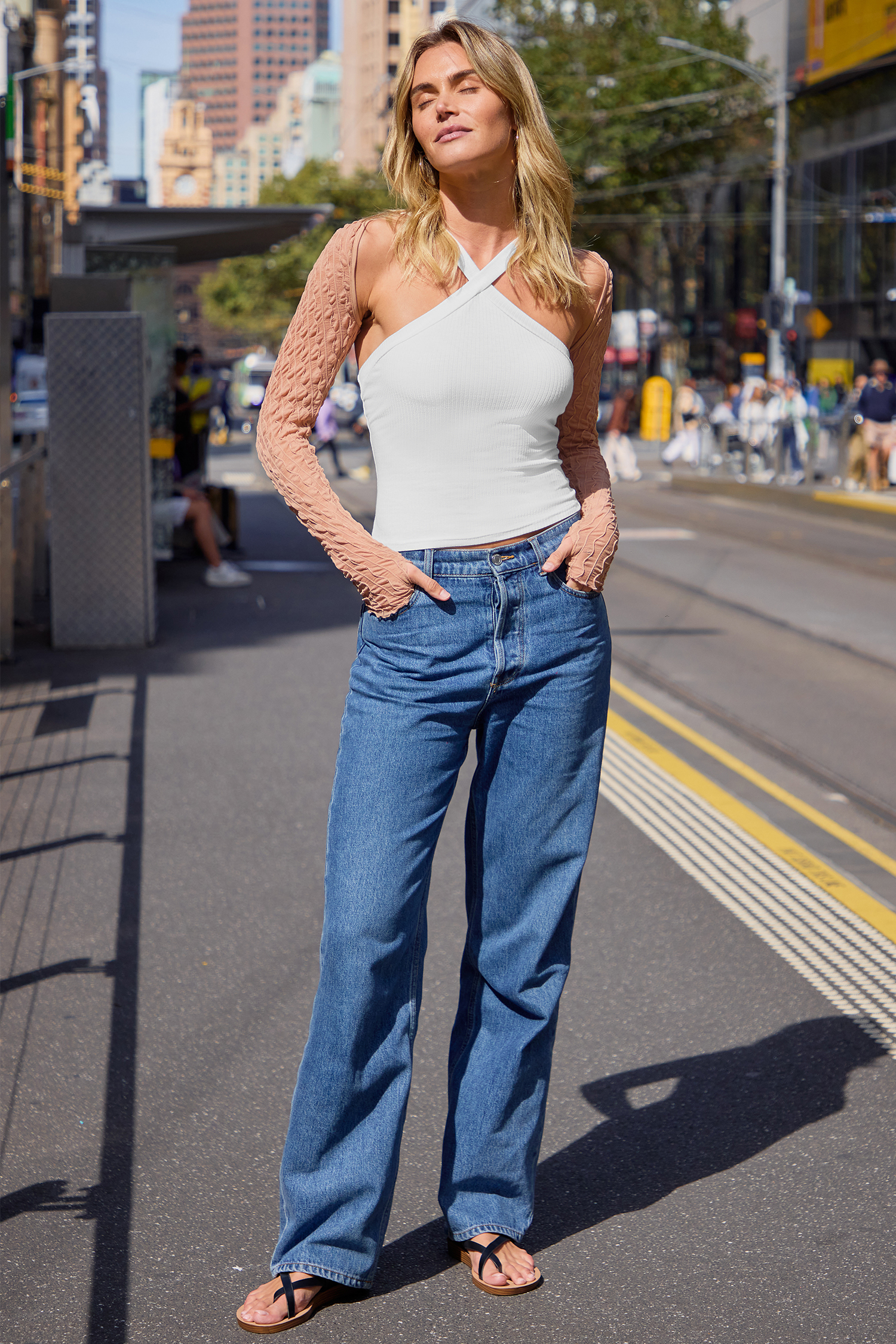 InicioCamiseta sin mangas corta con cuello alto blanca