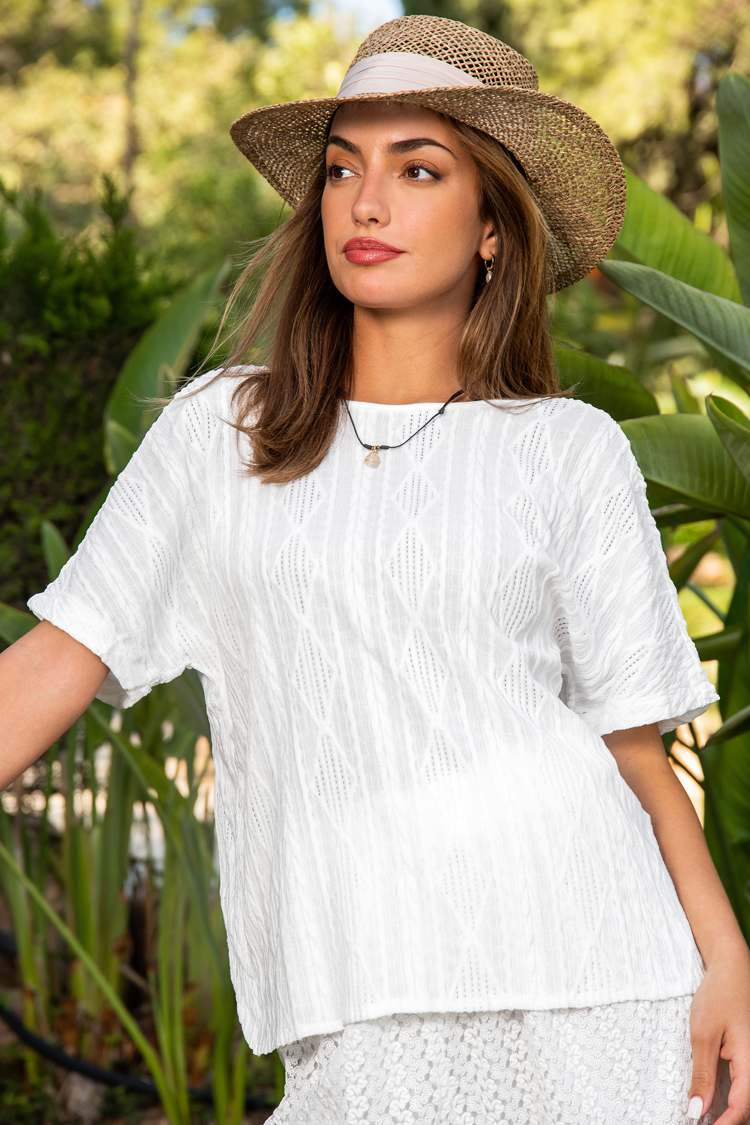 Top de manga corta con cuello redondo de punto blanco