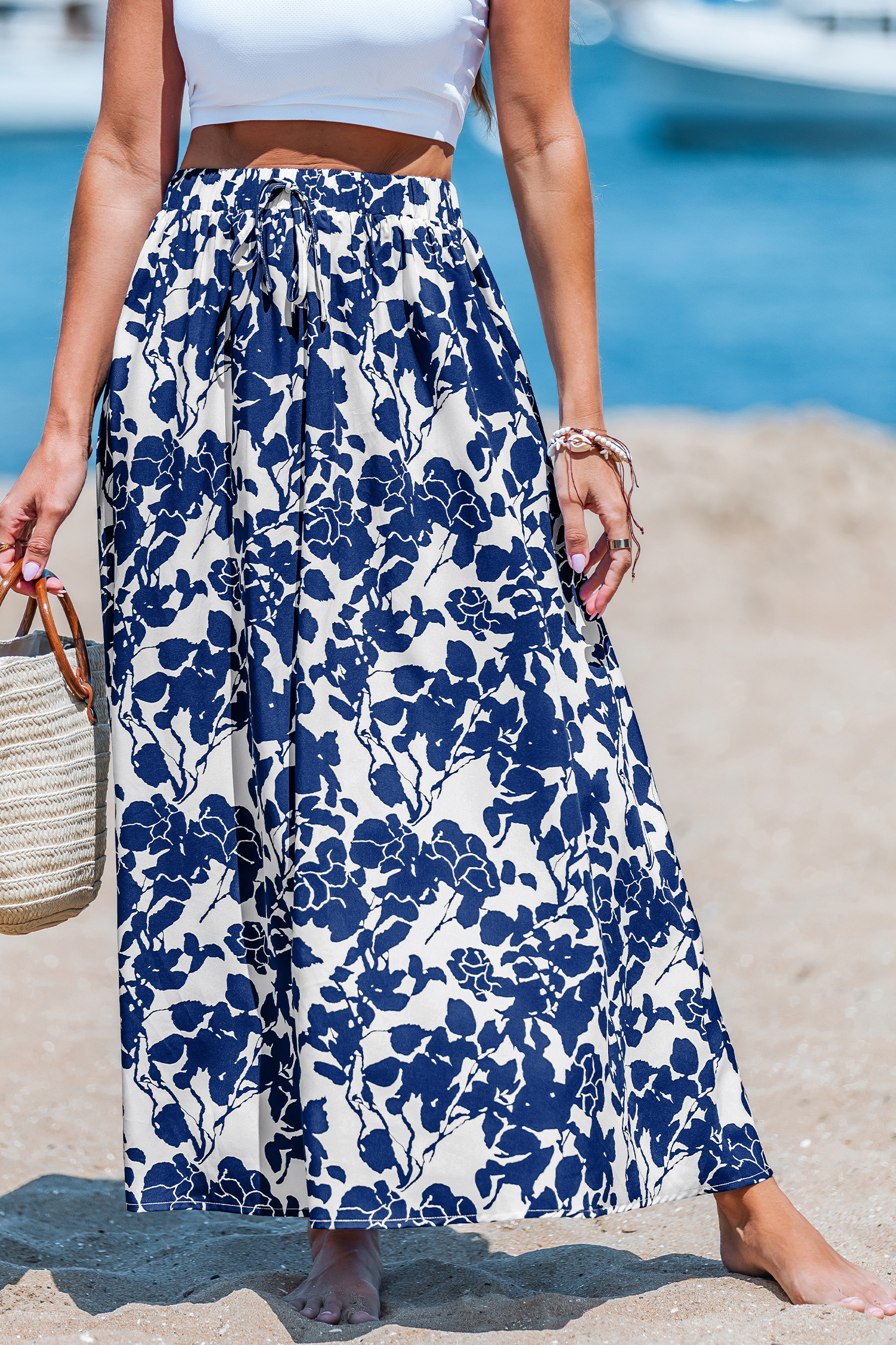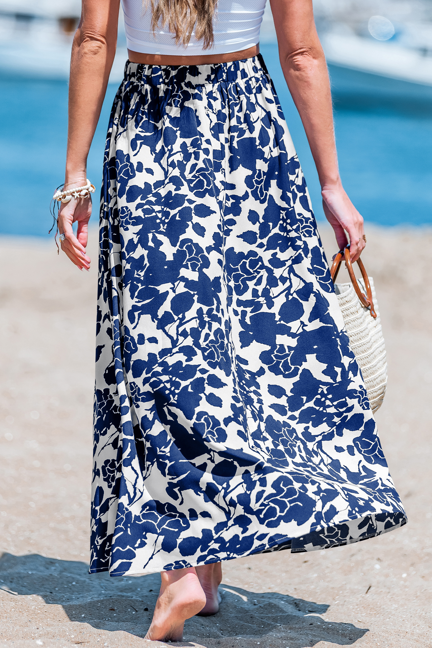 Falda midi azul cielo con flores silvestres