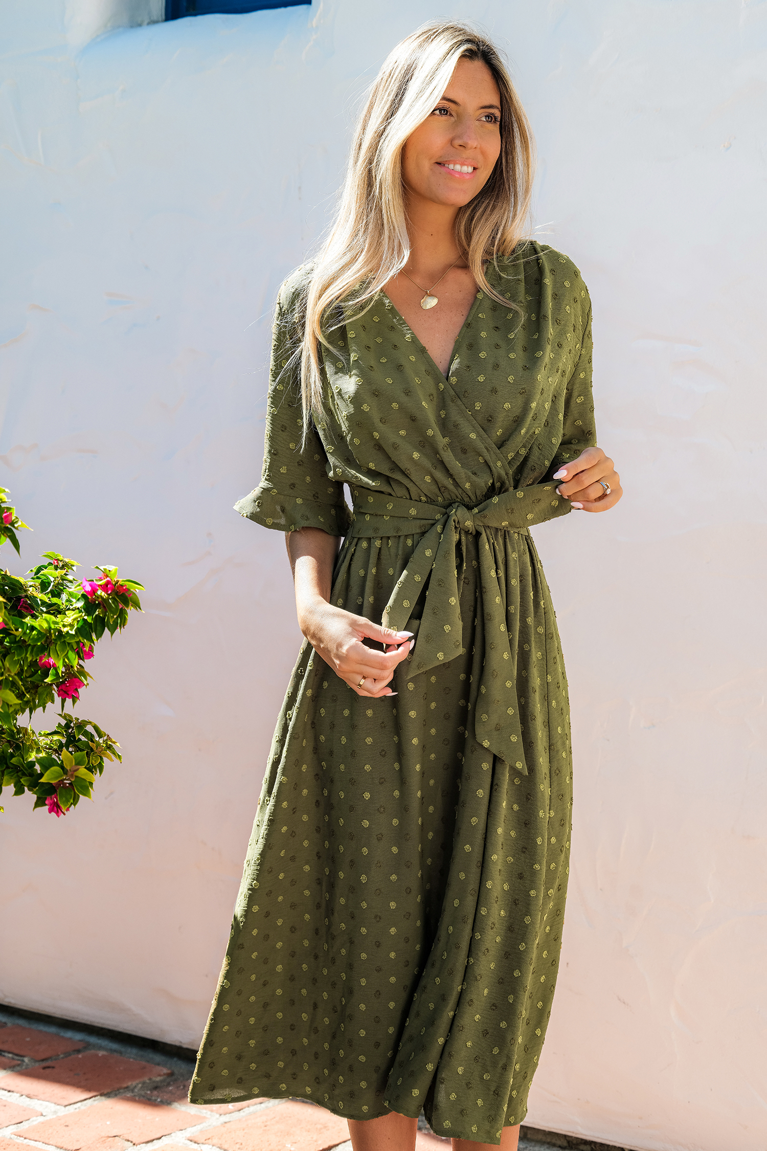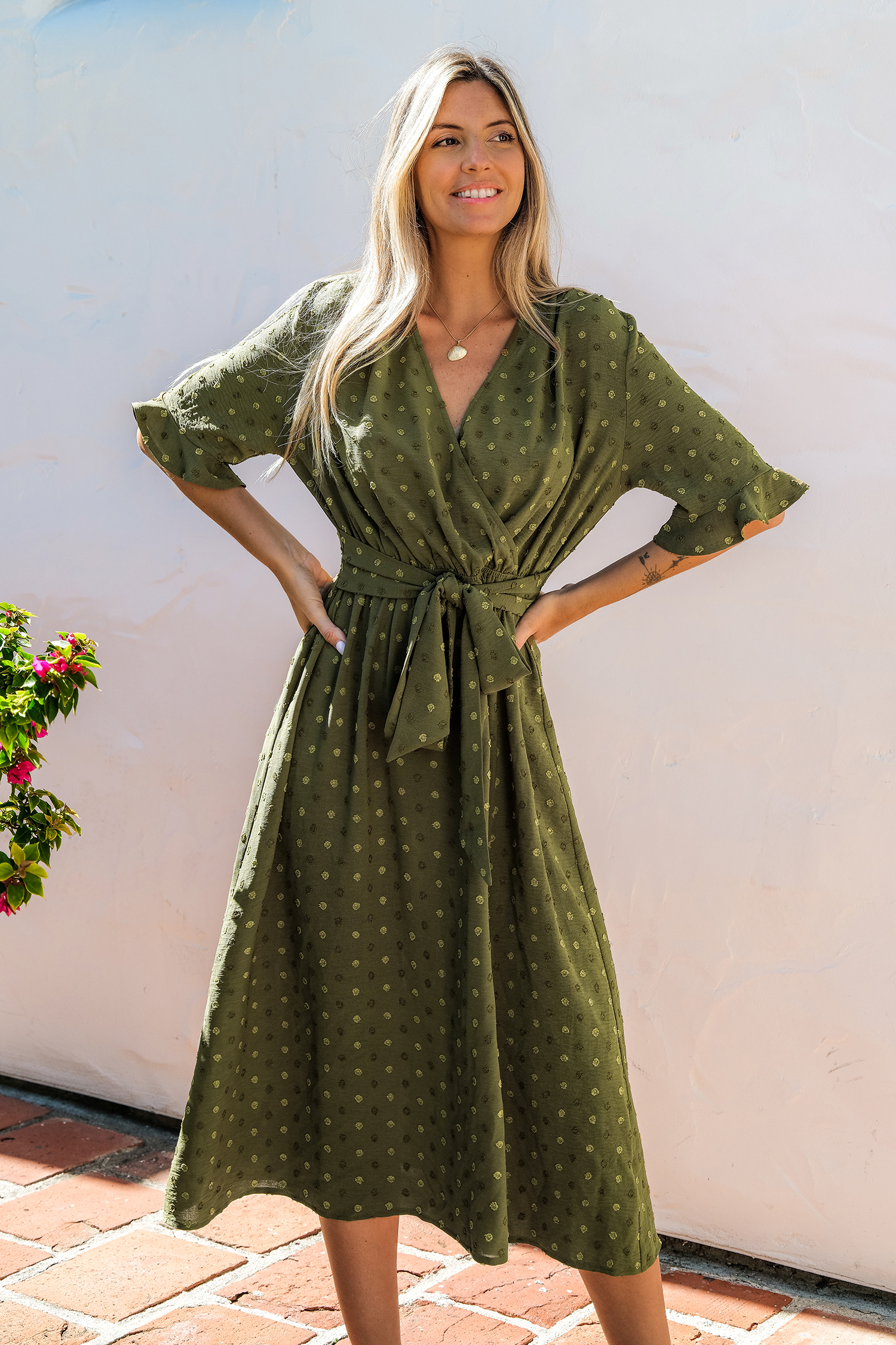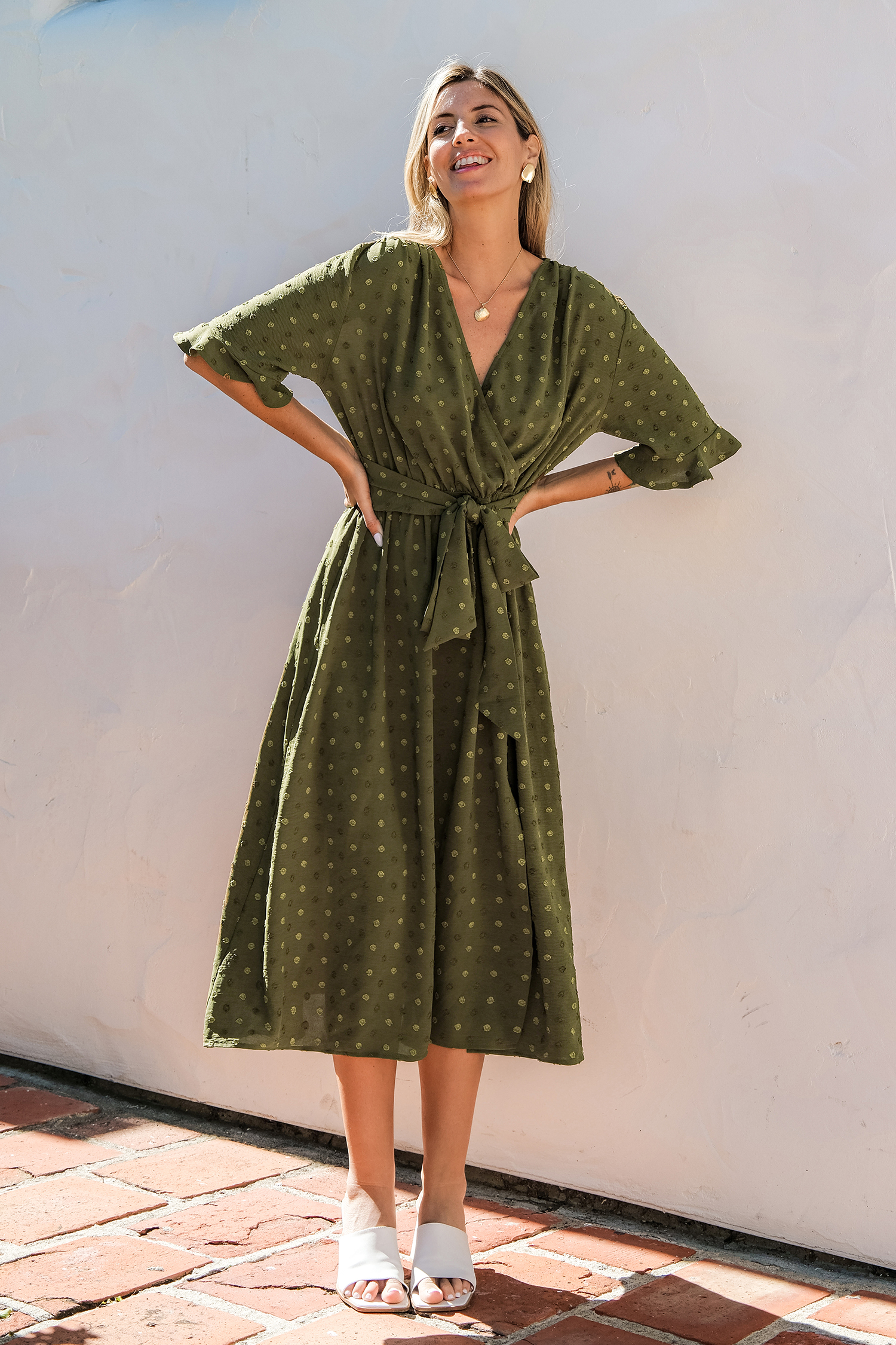 Vestido largo tejido con abertura y dobladillo con mangas acampanadas