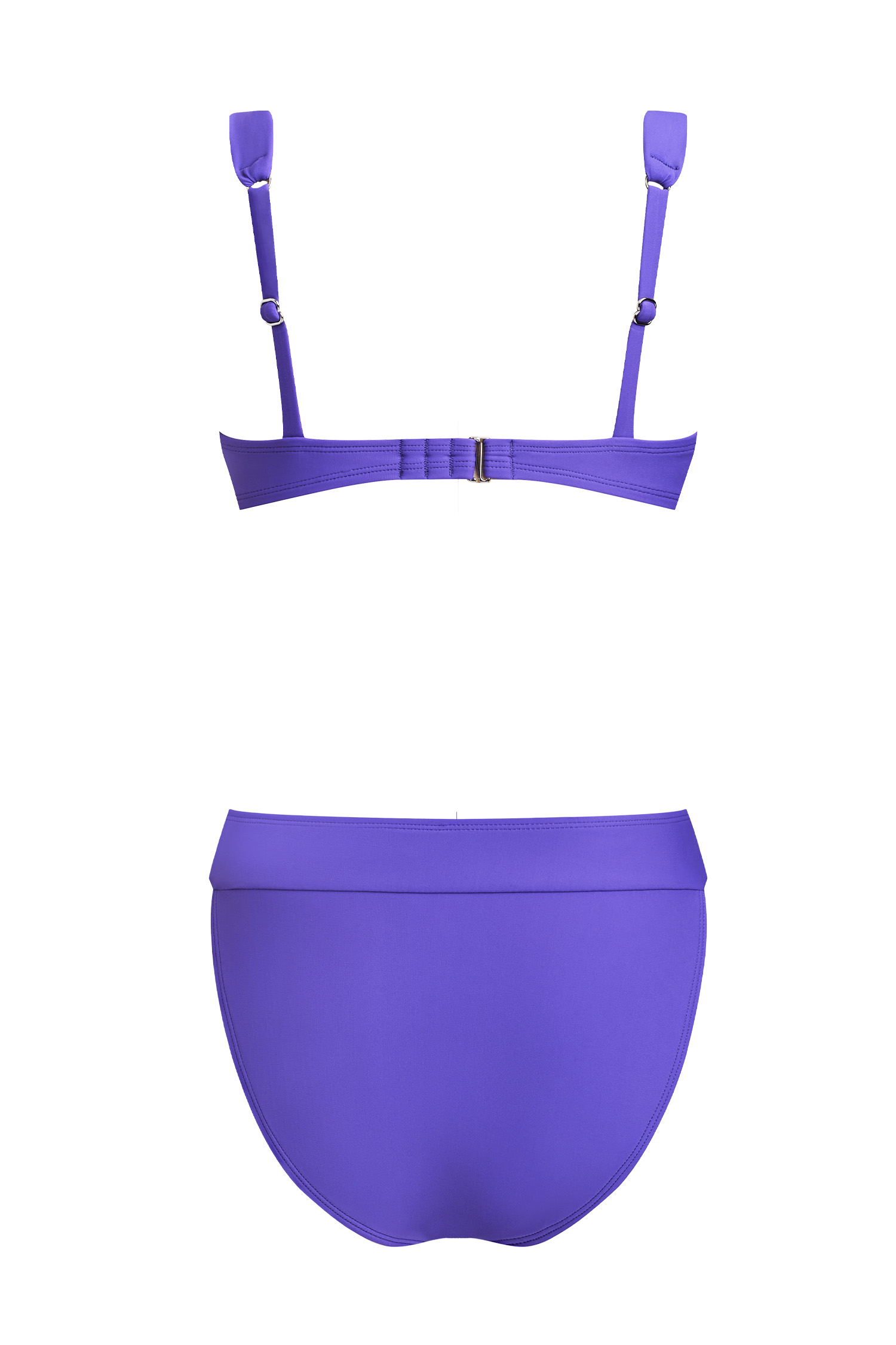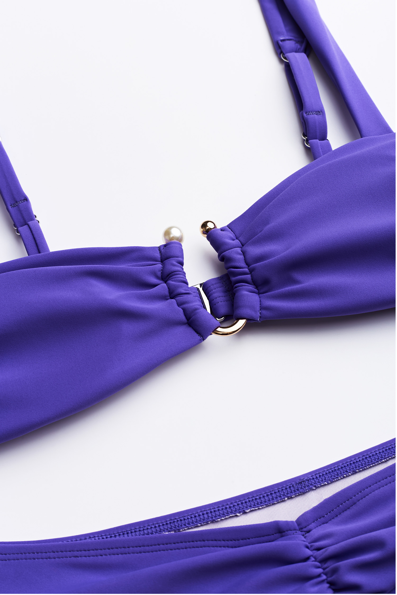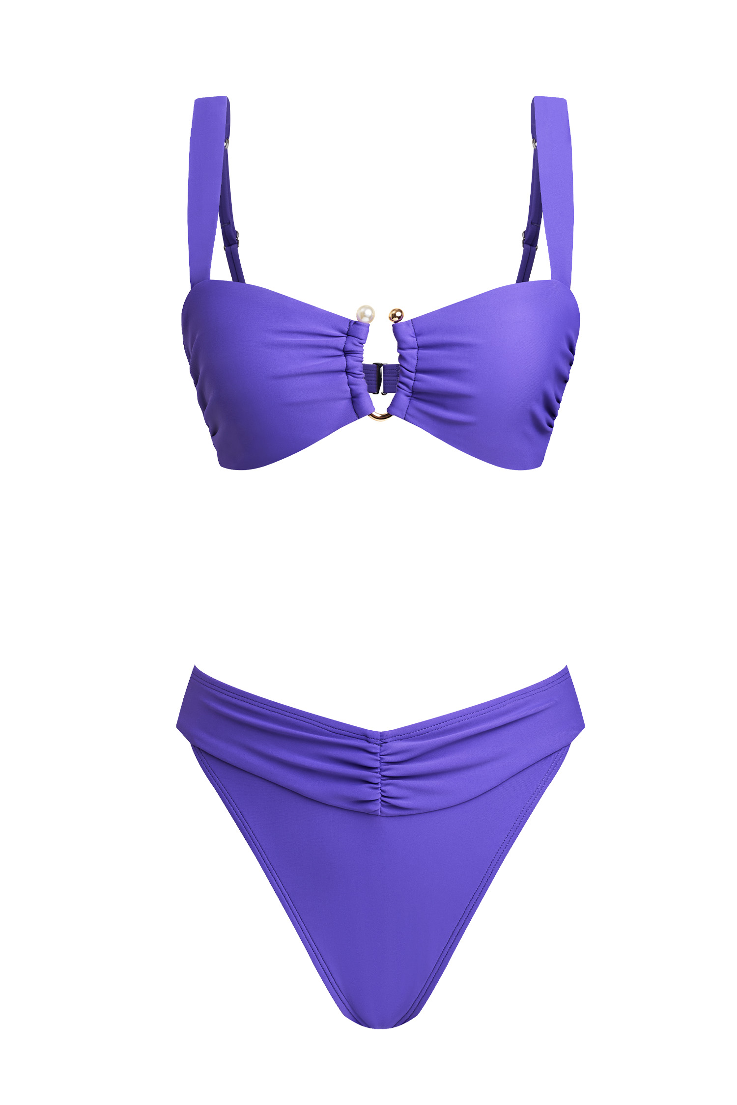 El conjunto de bikini morado amatista cálido es tu nuevo favorito para lograr un look playero atrevido pero favorecedor. Con escote en forma de corazón, tirantes ajustables y copas suaves extraíbles para brindar soporte a un busto medio, este conjunto combina comodidad y estilo a la perfección. El ajuste de cintura alta y el corte alto de la pierna resaltan tus curvas mientras que la moderna cobertura de trasero atrevido agrega un toque de encanto divertido.